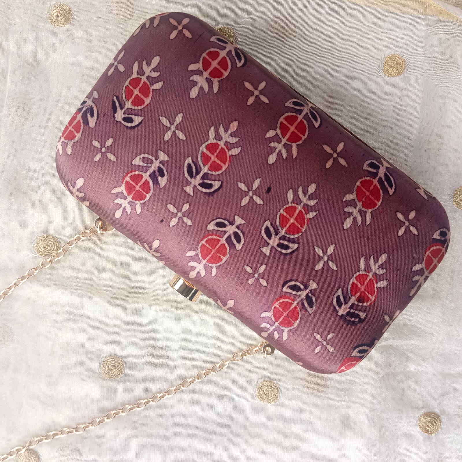 Box Clutch Ajrakh Modal Ash Brown Round (Round Edge)