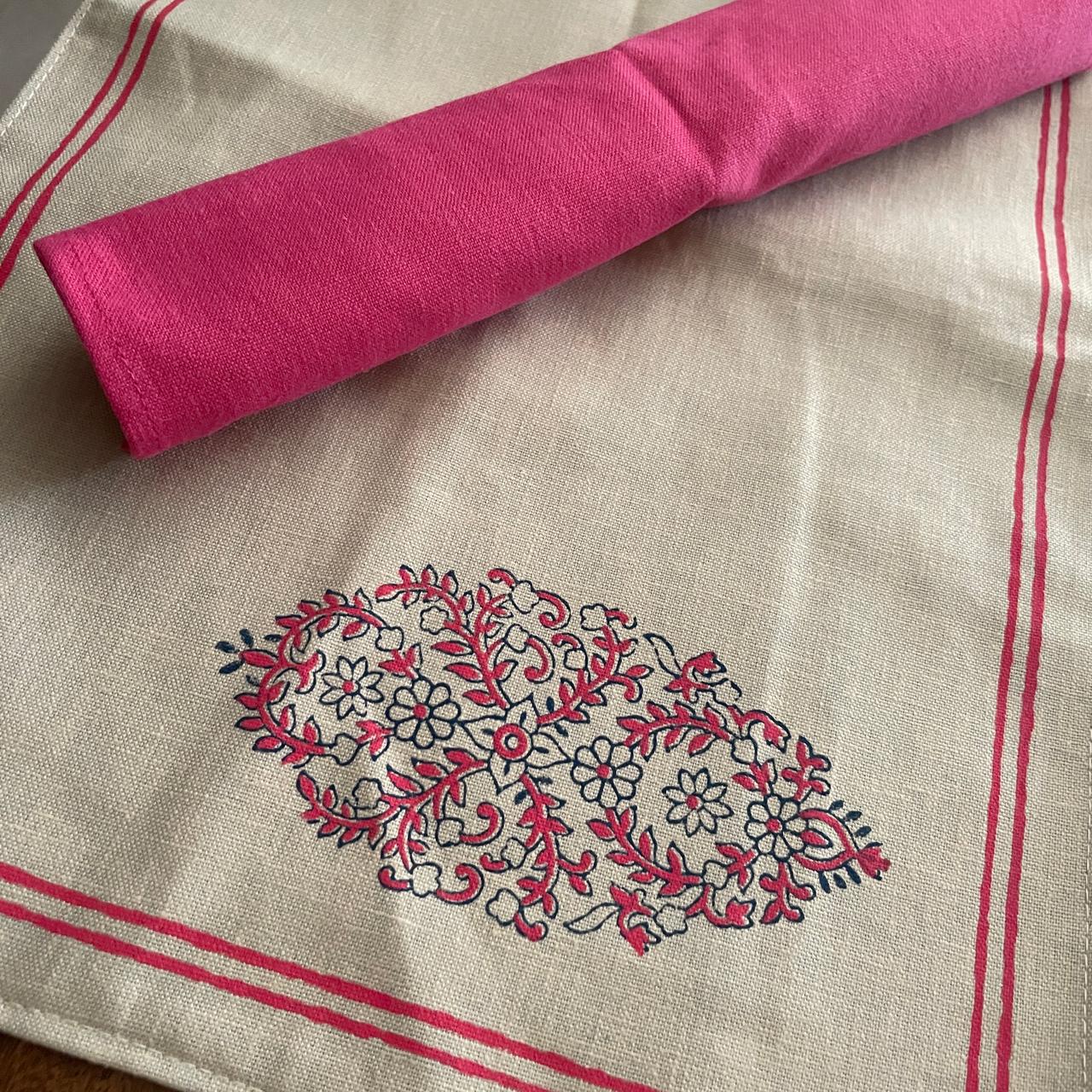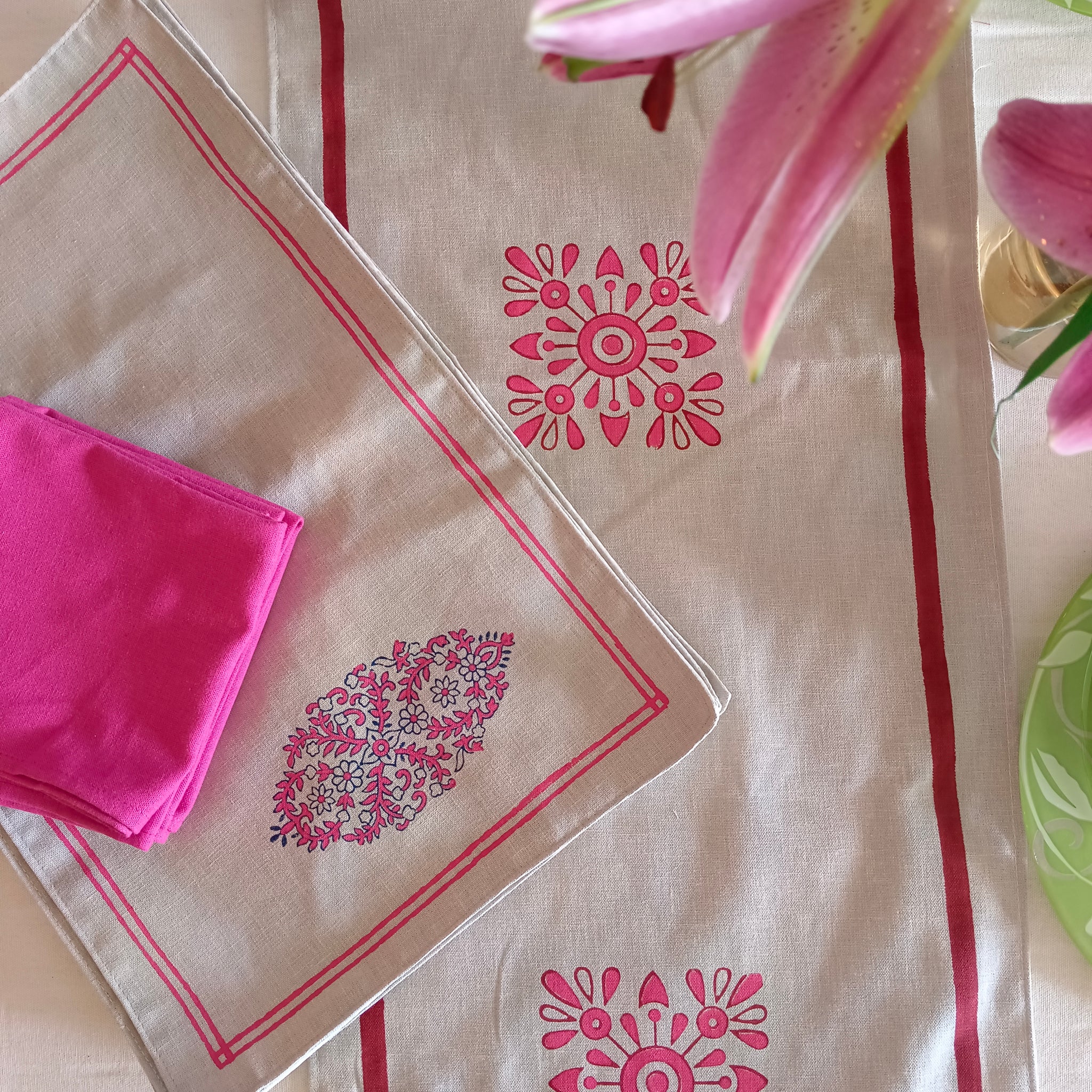 Handblock Printed Table Linen Set- Mughal motif Pink