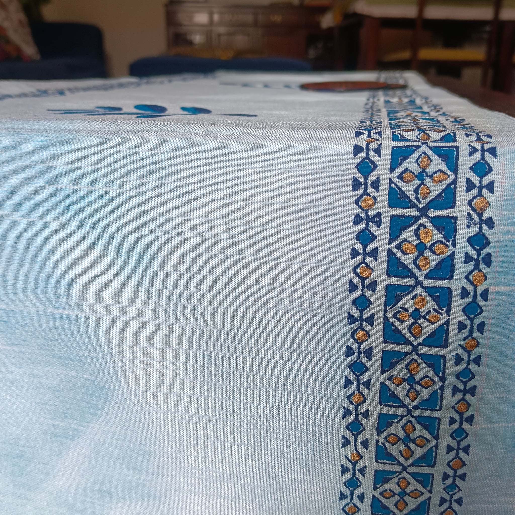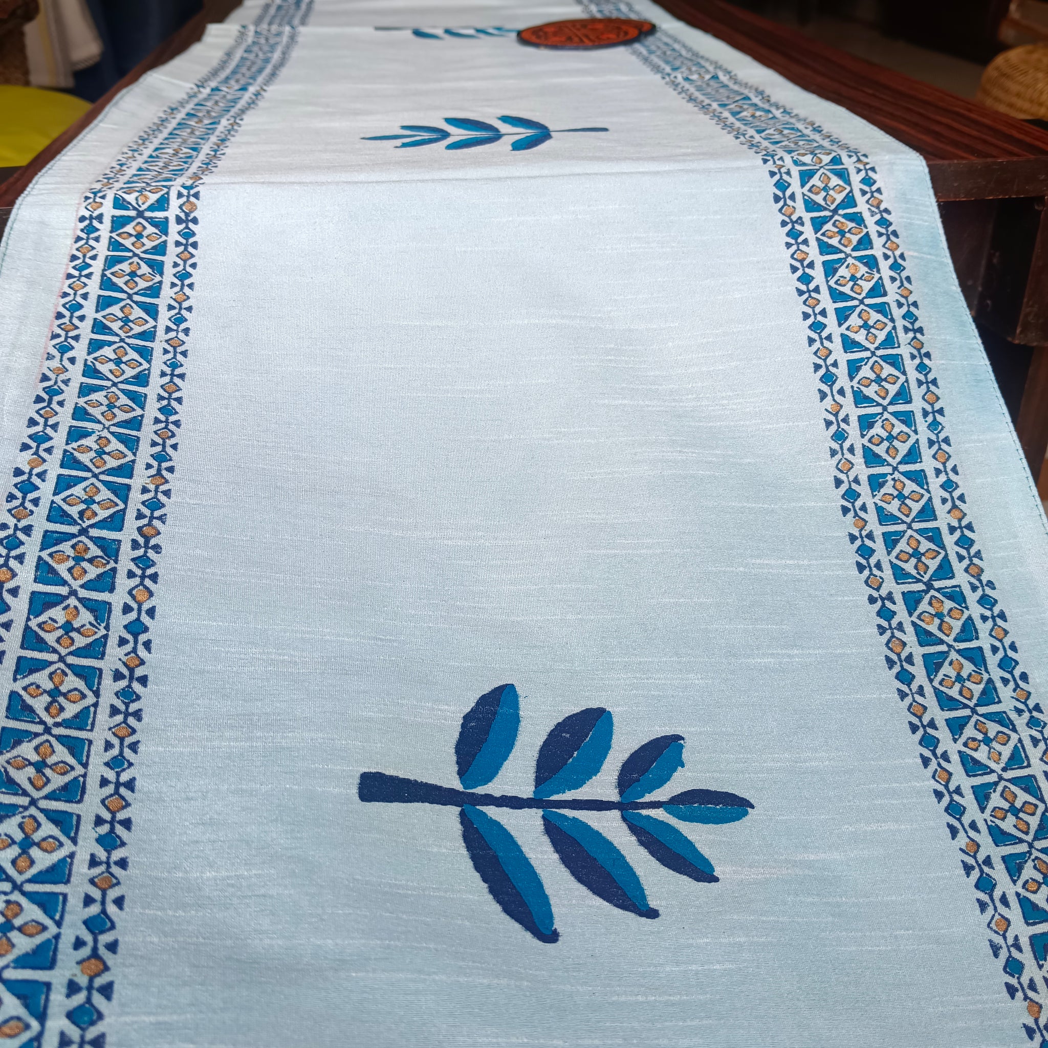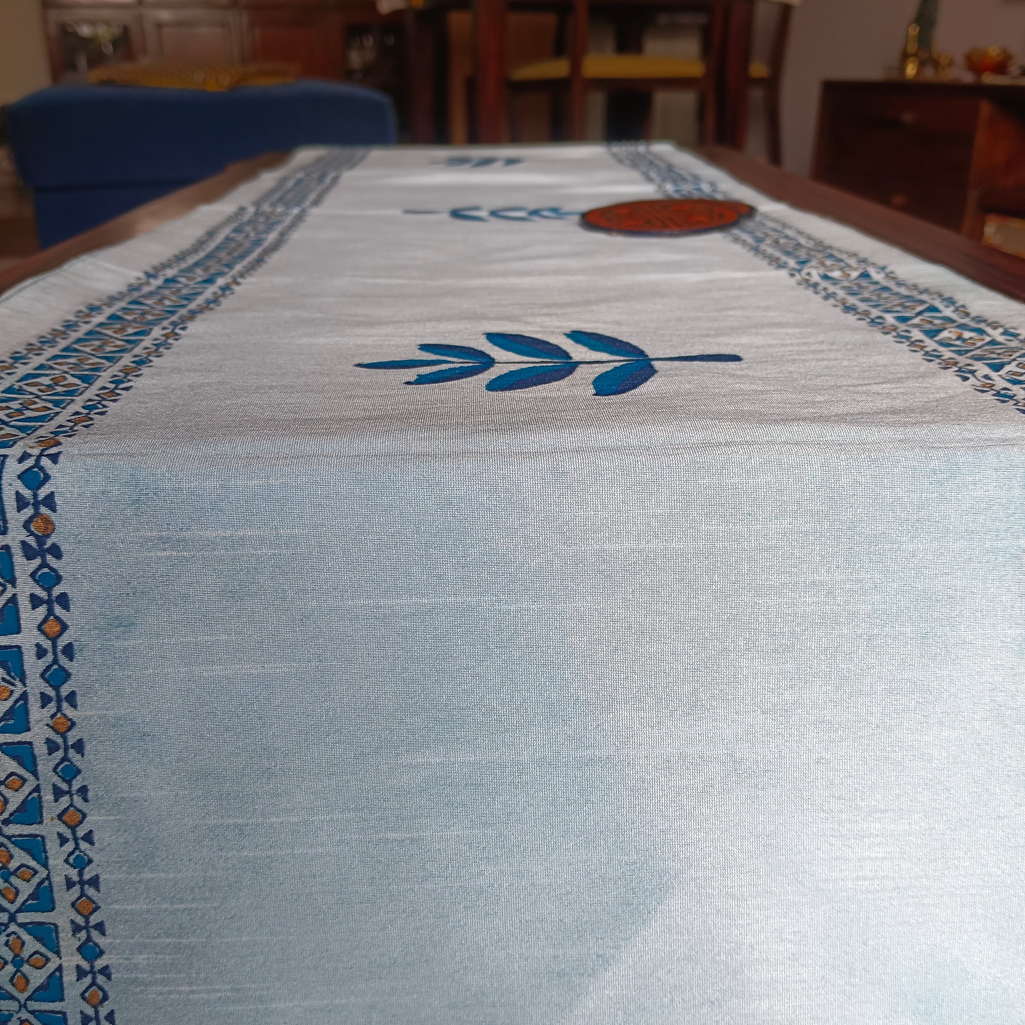 Polysilk Blockprinted Runner Half Leaf Blue Runner