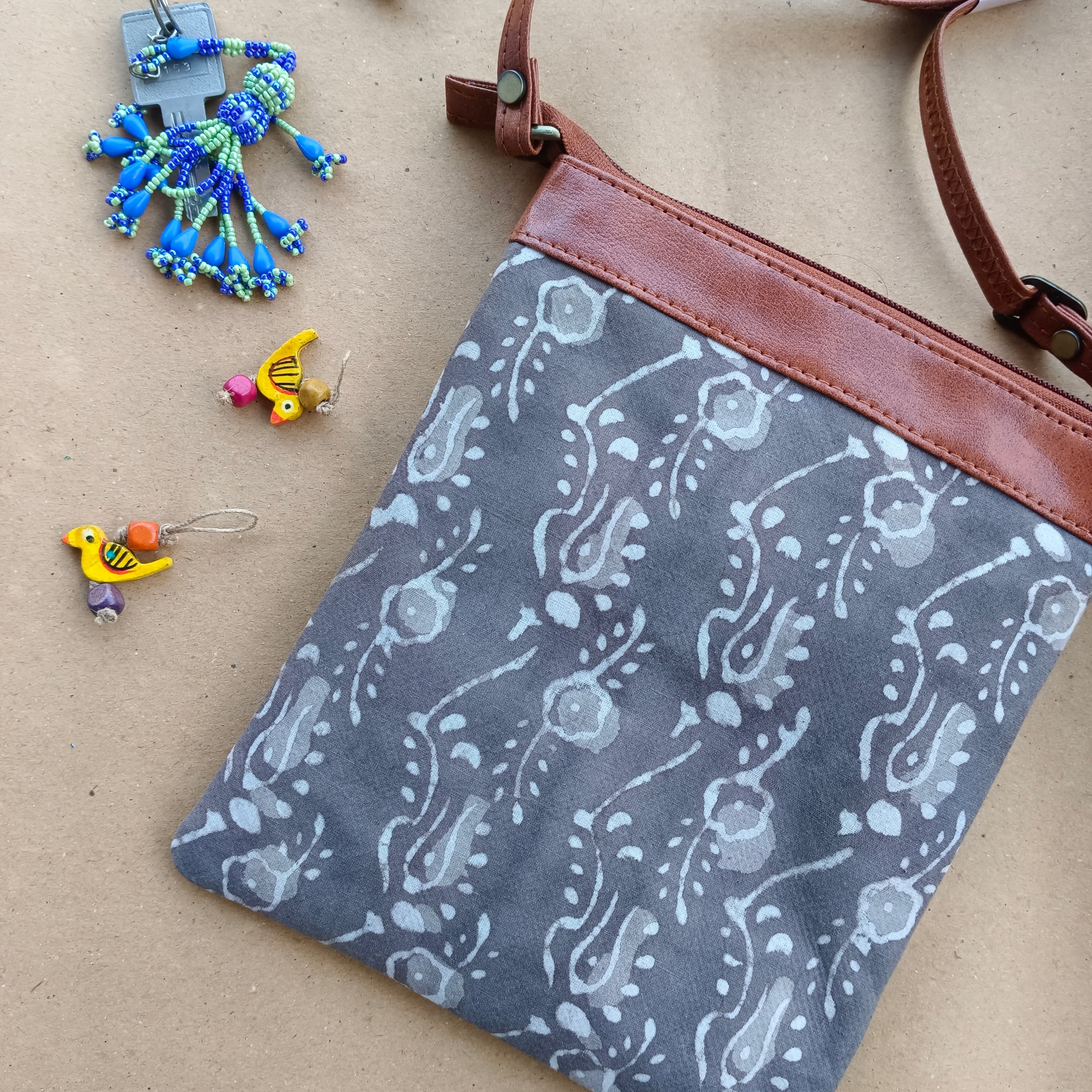 Small and practical cross body sling bags are ideal for women, girls. These Ajrakh block printed sling bags are sure to attract eyeballs with its different look and print. It can be used to carry keys, money and mobile. It is not made of leather, so ideal for vegans.