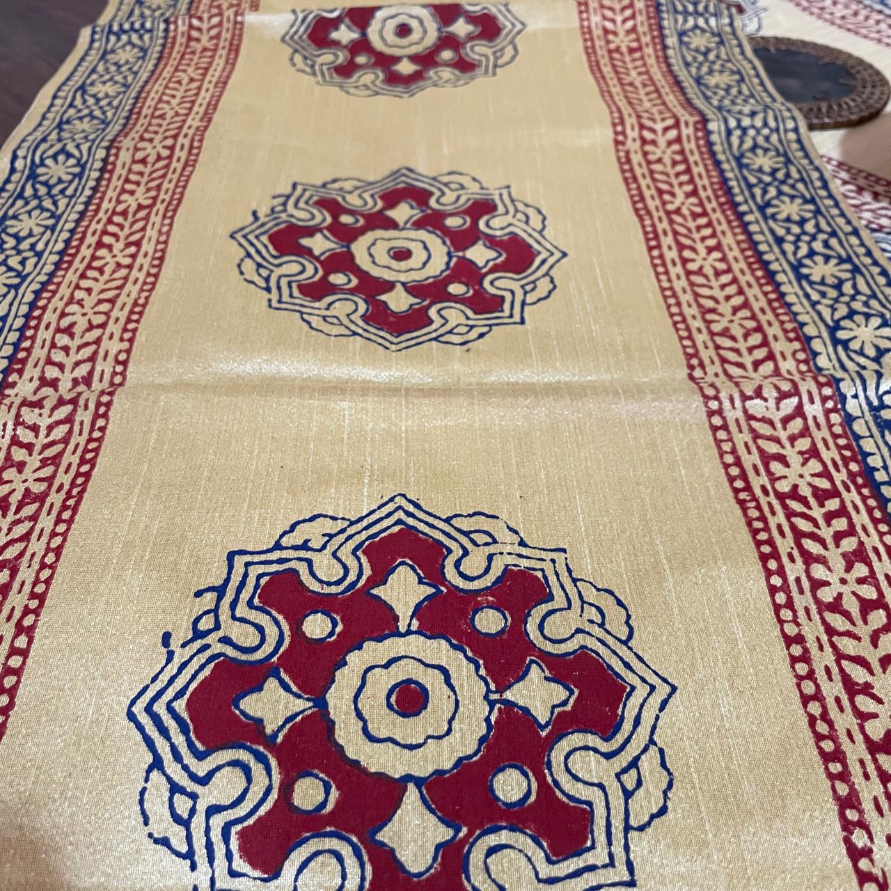 Polysilk Blockprinted Runner Dull Gold Tashkent Runner