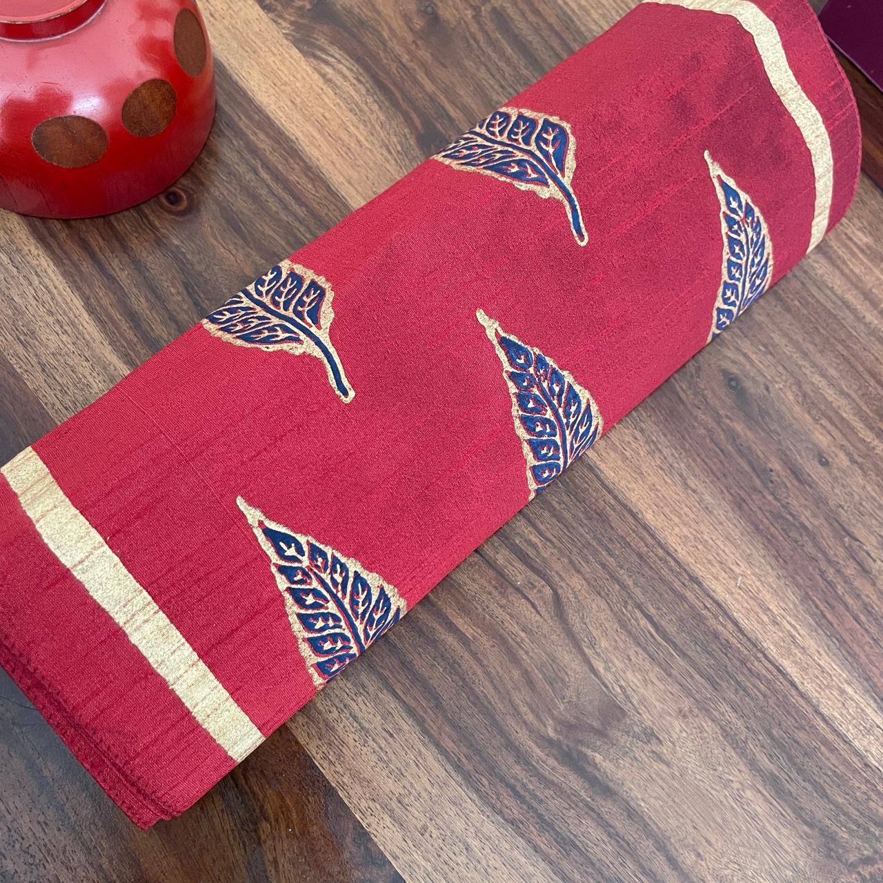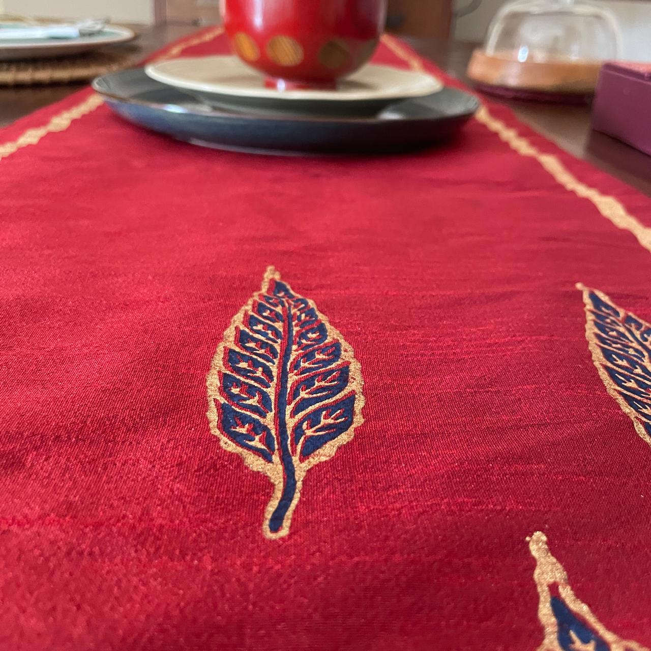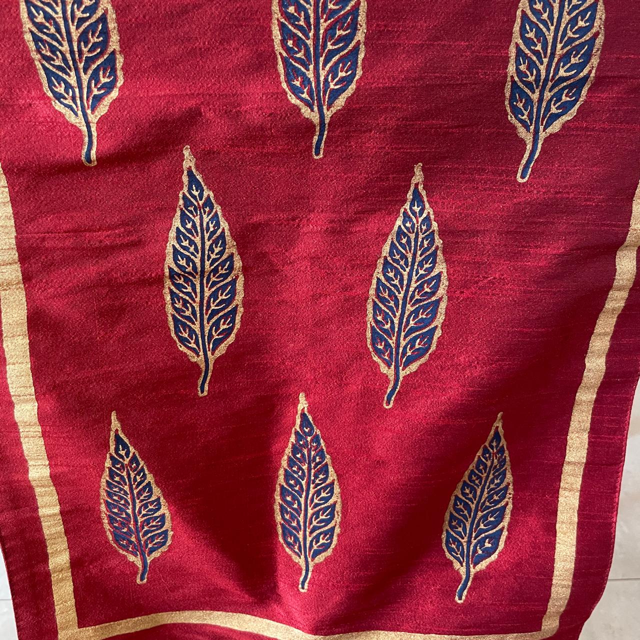 Polysilk Blockprinted Maroon Leaf Runner